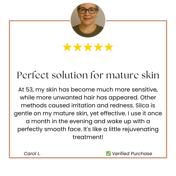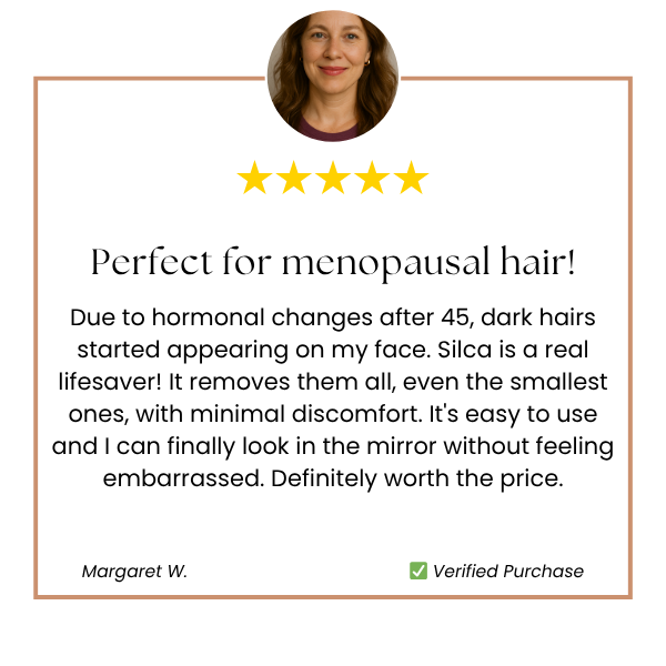 ✔️ Created specifically for menopausal hair. Silca effectively removes unwanted facial hair caused by hormonal changes.